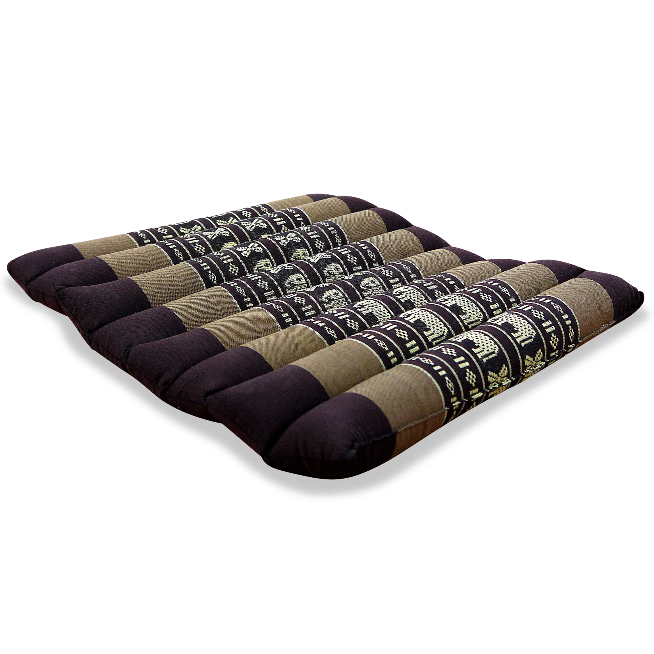 De oorsprong van het kleurrijke doorgestikte kussen ligt in Thailand. Daar is op de vloer zitten al eeuwenlang ingeburgerd. Met het doorgestikte kussen heb je ook hier altijd je Thaise accessoire bij je. Het kan neergelegd worden op een eetkamerstoel, het past op palletmeubels, maar kan ook onderweg worden gebruikt als kussen. Zo voorkom je dat je op een koude ondergrond moet zitten. Het kleine kussen kan overal worden neergelegd. De vulling van natuurlijke kapokvezels is vochtisolerend, waardoor het doorgestikte kussen in de maat M je zelfs op een vochtige ondergrond of op een boot een praktische zitgelegenheid biedt.