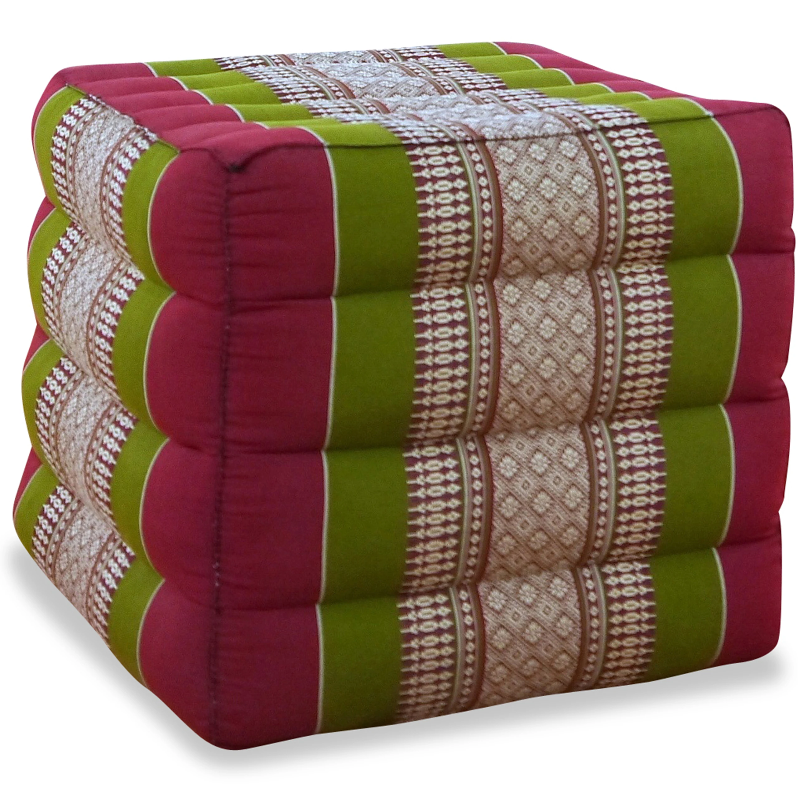 Het kubuskussen dient als comfortabele zitplaats in de woonkamer en voor buiten. Omdat zijn innerlijke kwaliteiten tellen: De vulling van het vormvaste zitkussen bestaat uit 100 % natuurlijke kapok. De kapokvezel is vocht- en warmte-isolerend; zo worden ook koele avonden aangenaam. Het kleurrijke Thaise design vormt een stralende blikvanger in kinderkamer en woonkamer, verfraait de gang en creëert buiten een vakantieloungeset om te relaxen. De zitkubus is ook geschikt voor yoga of om je benen omhoog te leggen na een zware dag.